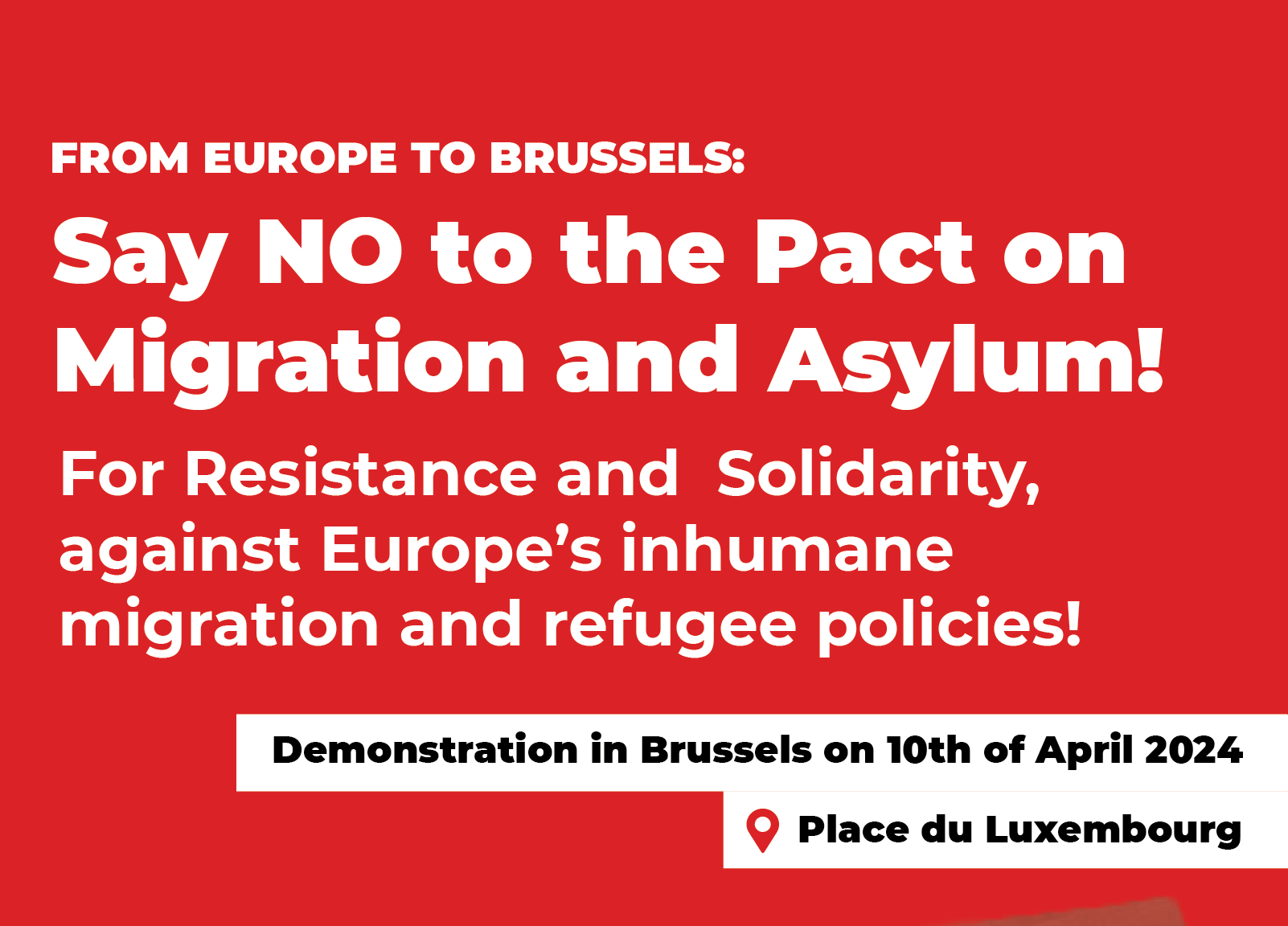 SOLIDAR joins over 50 civil society organisations, networks and Trade Unions active at the European or national level to call for a mobilization in Brussels at Place Luxembourg, in front of the European Parliament on 10th April at 3 pm as Members of the European Parliament will vote on the same day for the Migration Pact.