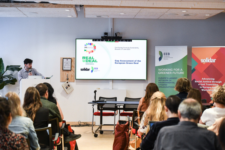 Jeffrey Moxom, SDG Watch Europe Coordinator, EEB presented the main findings of the Gap Assessment of the European Green Deal Report.