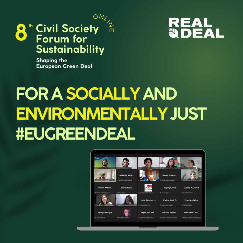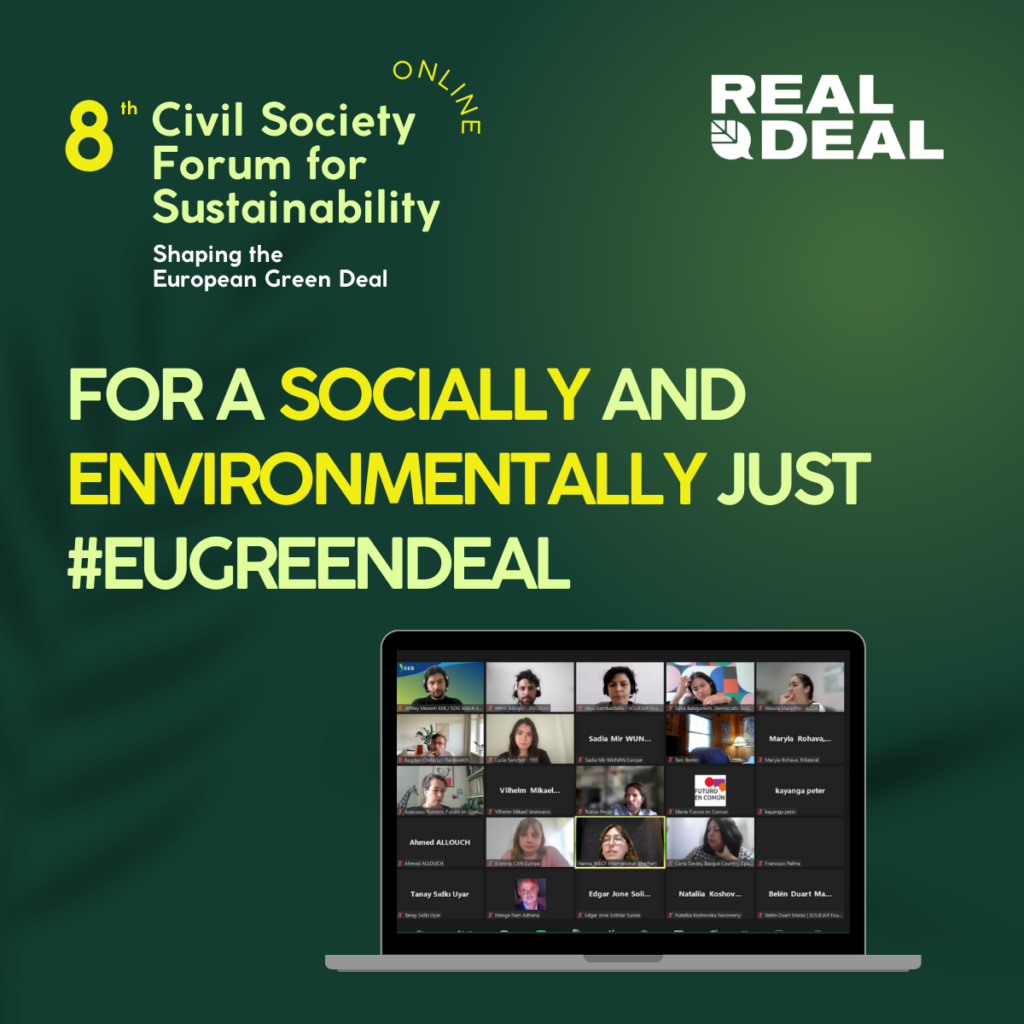 The eighth edition of the Forum gathered around 40 CSOs from across Europe and beyond, providing a crucial space for people and CSOs to join interactive discussions and develop demands under 5 thematic learning spaces: Social, Environmental, Participatory, Economic and Global dimensions. The Forum was also an opportunity for the participants to learn about the preliminary findings of the citizens deliberation research within the REAL DEAL project at the European level, as well as barriers, challenges, lessons learned and good practices from CSOs’ engagement in EGD processes, presented by key speakers at the Forum.