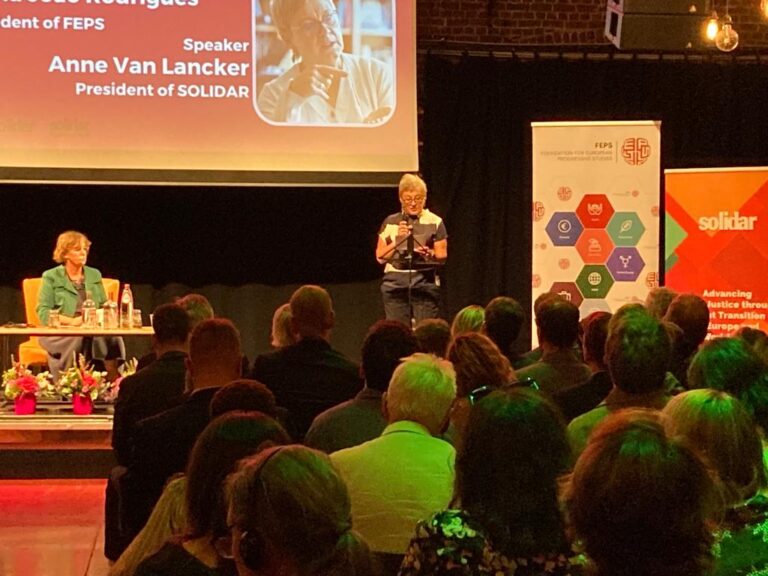 Anne Van Lancker, SOLIDAR President, stressed the importance of collective effort to achieve a fair and equitable transition. She emphasized the importance of the progressive movement’s unity, stating,