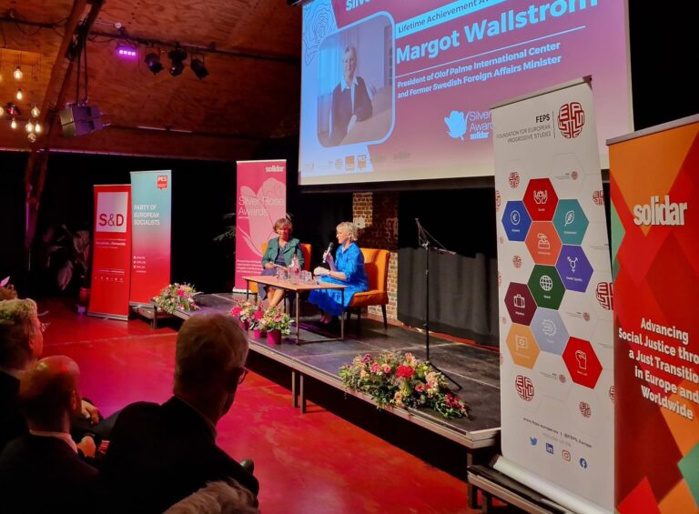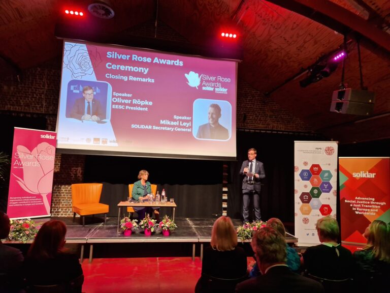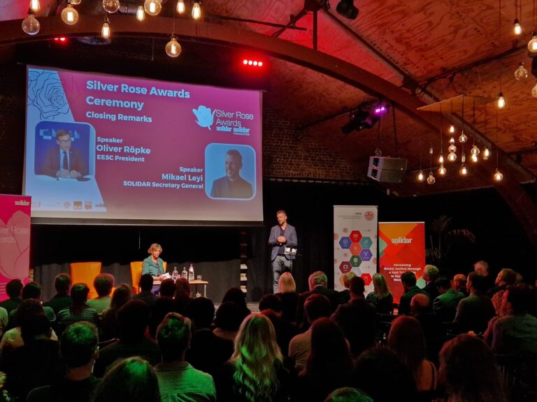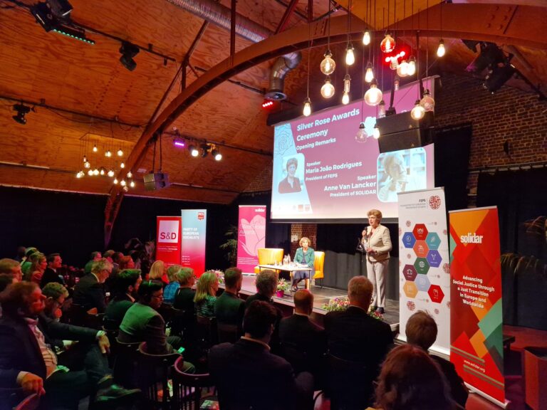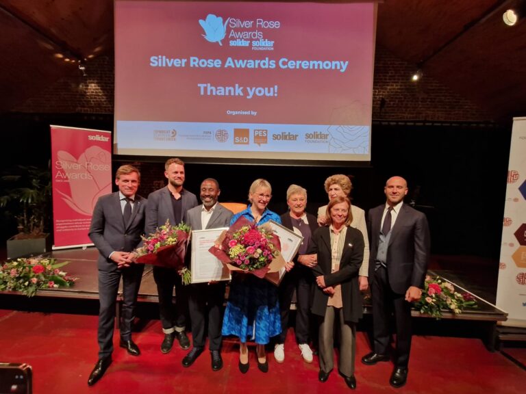 On October 11th, SOLIDAR, in collaboration with the Foundation for European Progressive Studies (FEPS), the Party of European Socialists (PES), the Socialists and Democrats Group in the European Parliament (S&D), and the European Trade Union Confederation (ETUC), co-hosted the 2023 Silver Rose Awards Ceremony.