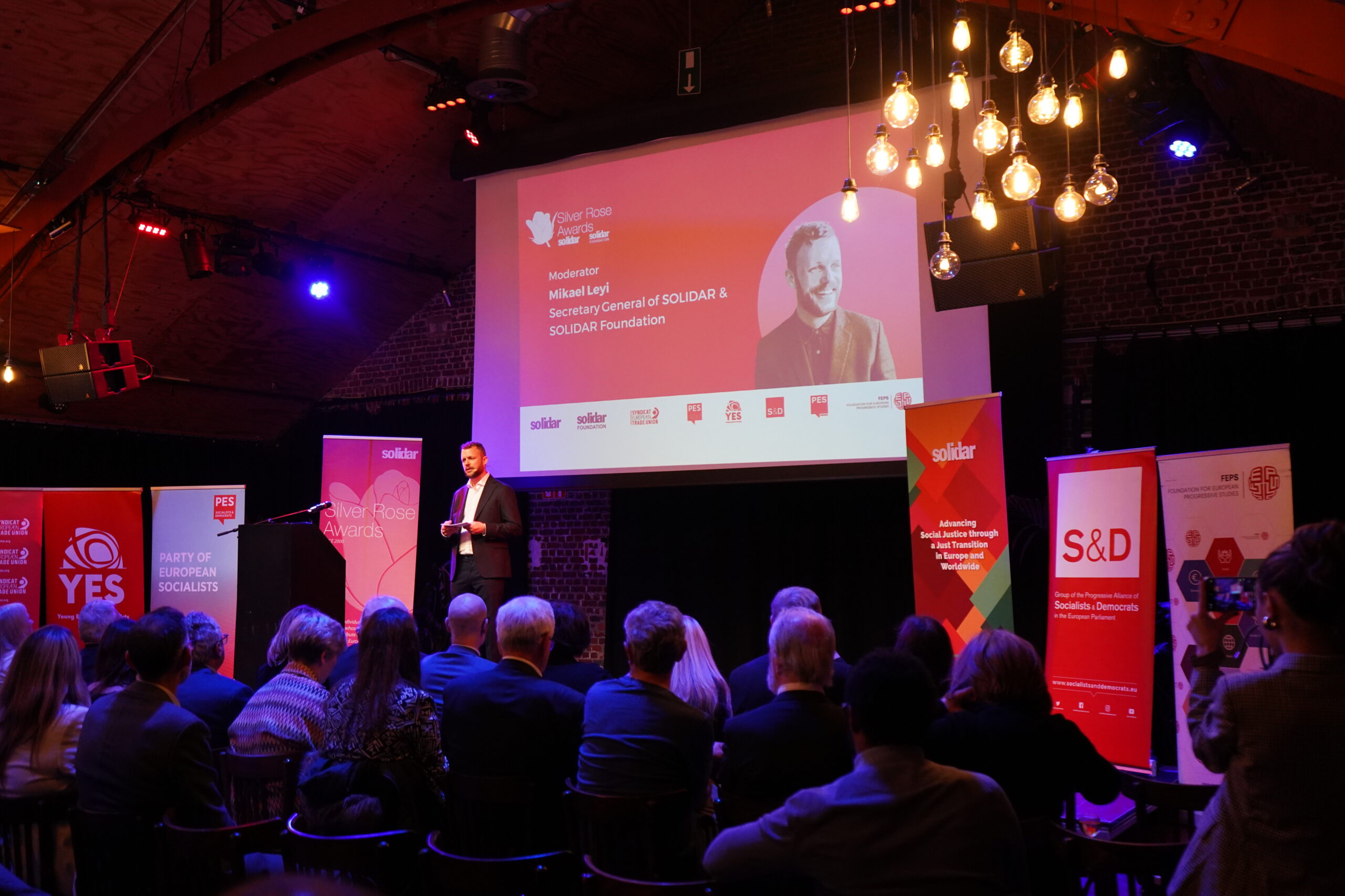 On December 4th, SOLIDAR, in collaboration with the Foundation for European Progressive Studies (FEPS), the Party of European Socialists (PES), the Socialists and Democrats Group in the European Parliament (S&D), the European Trade Union Confederation (ETUC), the Young European Socialists (YES), and PES Women co-hosted the 2024 Silver Rose Awards Ceremony.