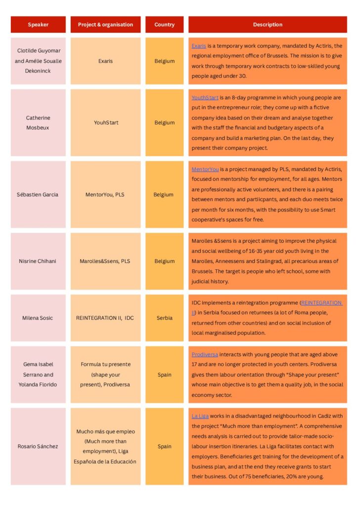 - the sustainability and quality of the jobs created through the projects, which is an important challenge for all the organisations wokring of labour market and the social inclusion of young people.